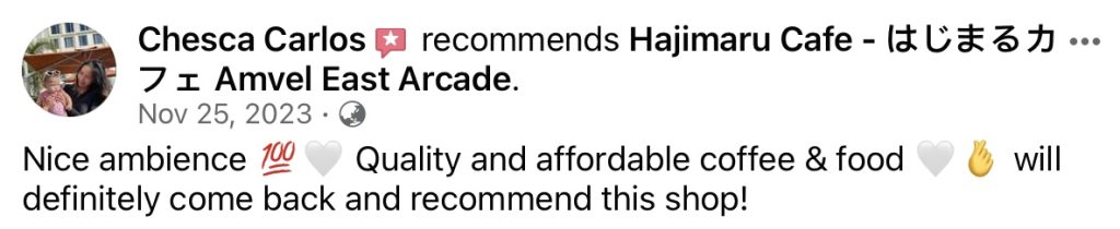 Hajimaru Cafe – はじまるカフェ, formerly known as Lotus Tea and Coffee – Amvel East Arcade, channels a Japanese ambiance, reflected in its Japanese-inspired architecture, drawing inspiration from its owner currently residing in Japan.